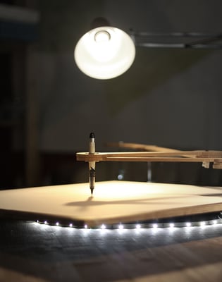 Robert Balke erforscht seit 2012 das Verhältnis von Rhythmus, Struktur und Harmonie in geometrischer Form. Im Zentrum seiner Arbeit stehen eigens entwickelte Zeichenmaschinen – kinetische